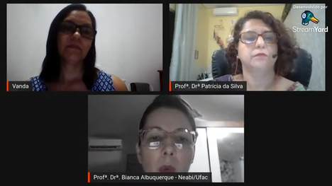 Profa. Ma. Flávia Rodrigues Lima da Rocha, Profa. Ma. Queila Batista dos Santos e Maycon David de Souza Pereira (CFCH/Ufac)