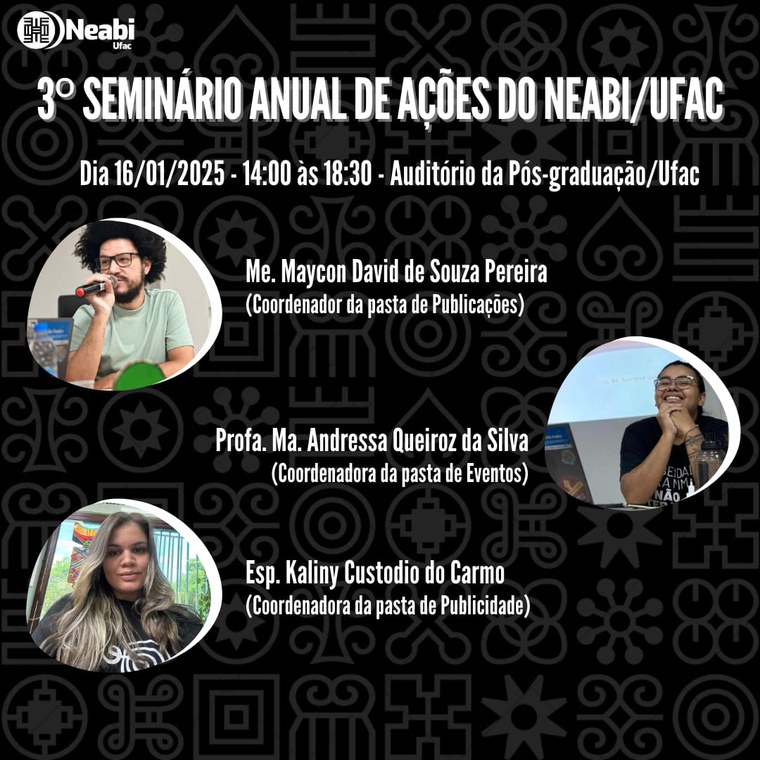Confira abaixo a lista de apresentações do 3º Seminário de Ações do Neabi/Ufac: