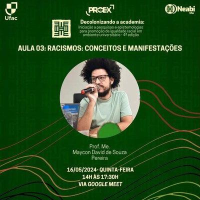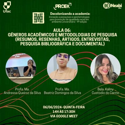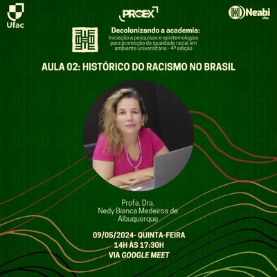 Neabi/Ufac abre inscrições para a 4ª edição de seu curso "Decolonizando a academia: iniciação a pesquisa e epistemologias para a promoção de igualdade racial em ambiente universitário"