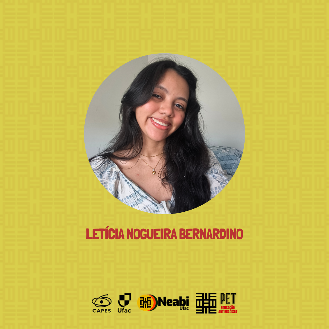 Estudante do curso de Bacharelado em Jornalismo pela Universidade Federal do Acre (Ufac). Ingressou no Núcleo de Estudos Afro-Brasileiros e Indígenas (Neabi/Ufac) em 2024 e, atualmente, é membra do núcleo por meio da bolsa do Programa de Educação Tutorial (PET): Educação Antirracista. Seu interesse acadêmico está voltado para a valorização da cultura afro-brasileira e a promoção da diversidade no campo da comunicação.