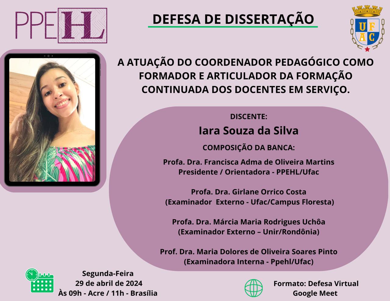 29 de abril de 2024 - Defesa de Dissertação da Mestranda Iara Silva
