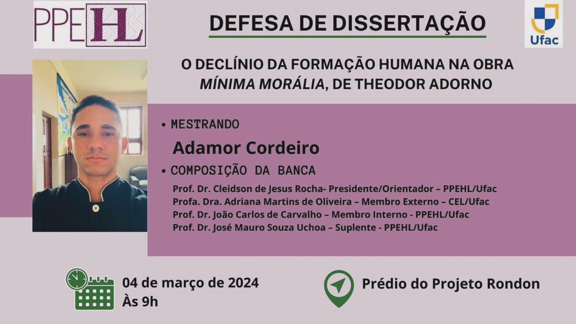 04 de março de 2024 - Defesa de Dissertação do Mestrando Adamor Cordeiro