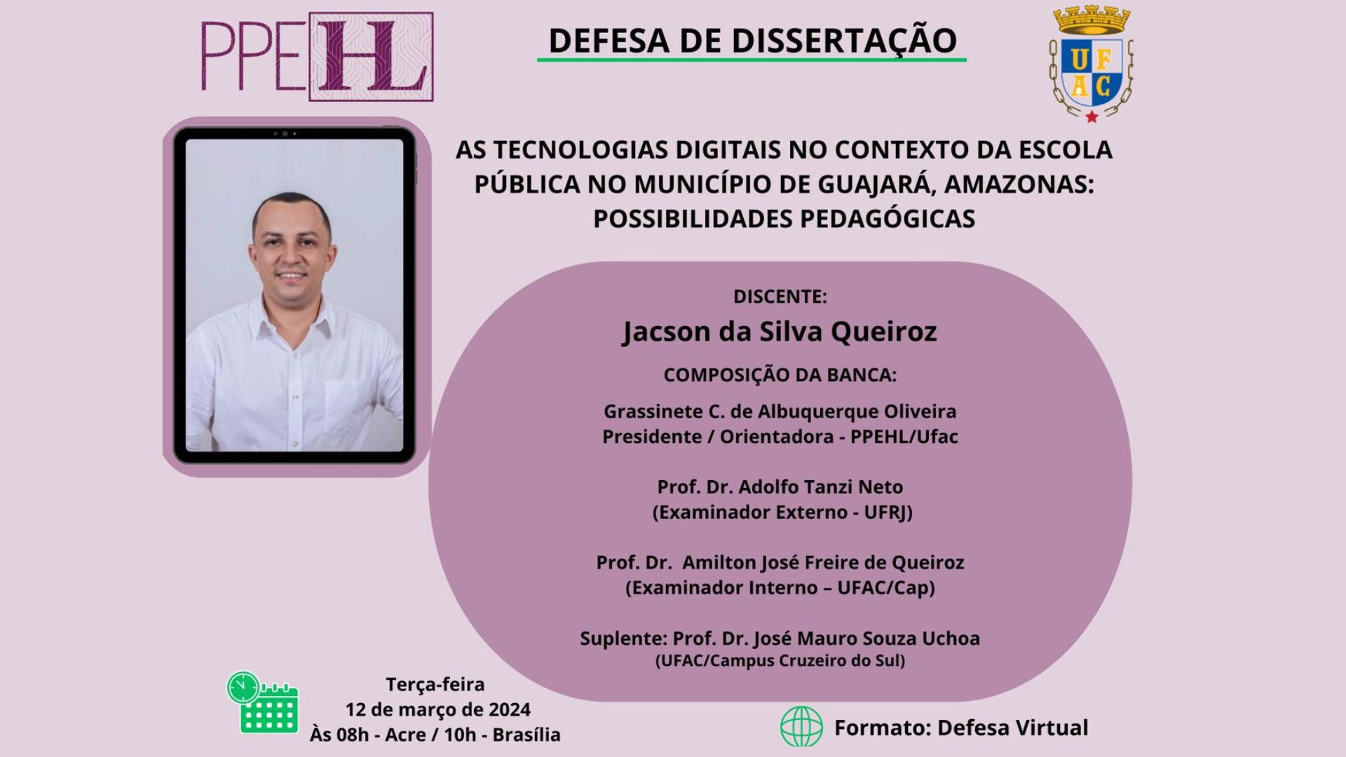 12 de março de 2024 - Defesa de Dissertação do Mestrando Jacson Queiroz