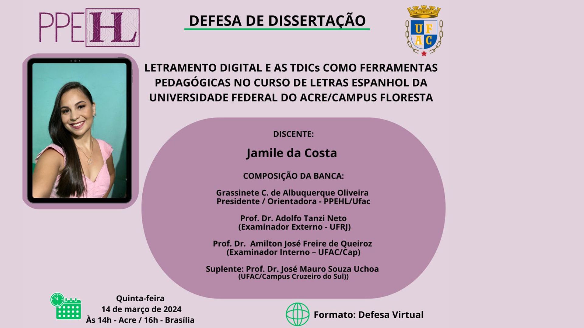 14 de março de 2024 - Defesa de Dissertação da Mestranda Jamile Costa