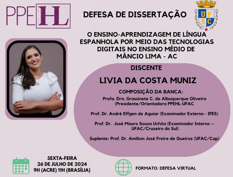 26 de julho de 2024 - Defesa de Dissertação da Mestranda Lívia da Costa Muniz