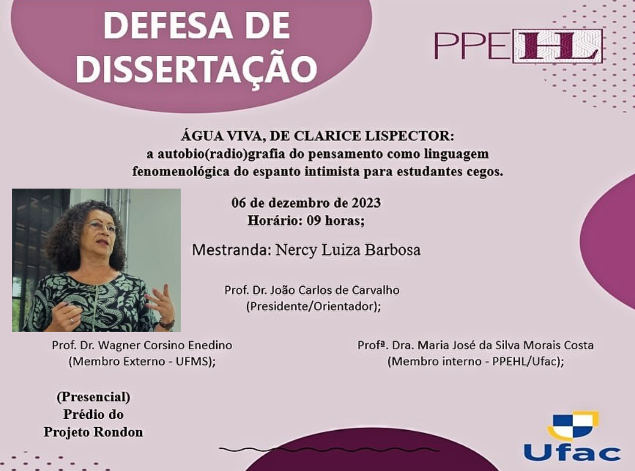 20 de dezembro de 2023 - Defesa de Dissertação da Mestranda Nercy Luiza Barbosa