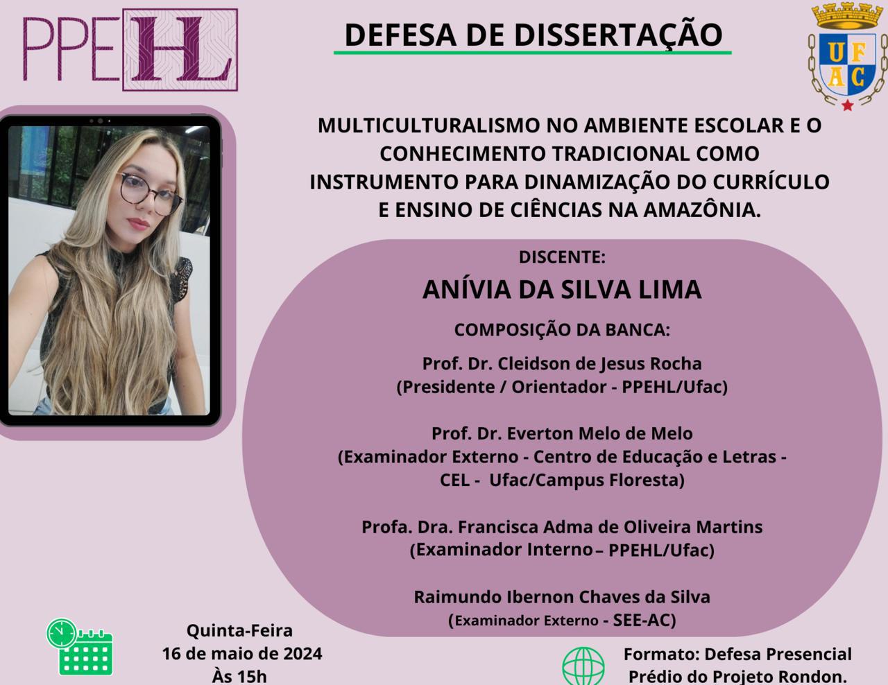 16 de maio de 2024 - Defesa de Dissertação da Mestranda Anívia Lima