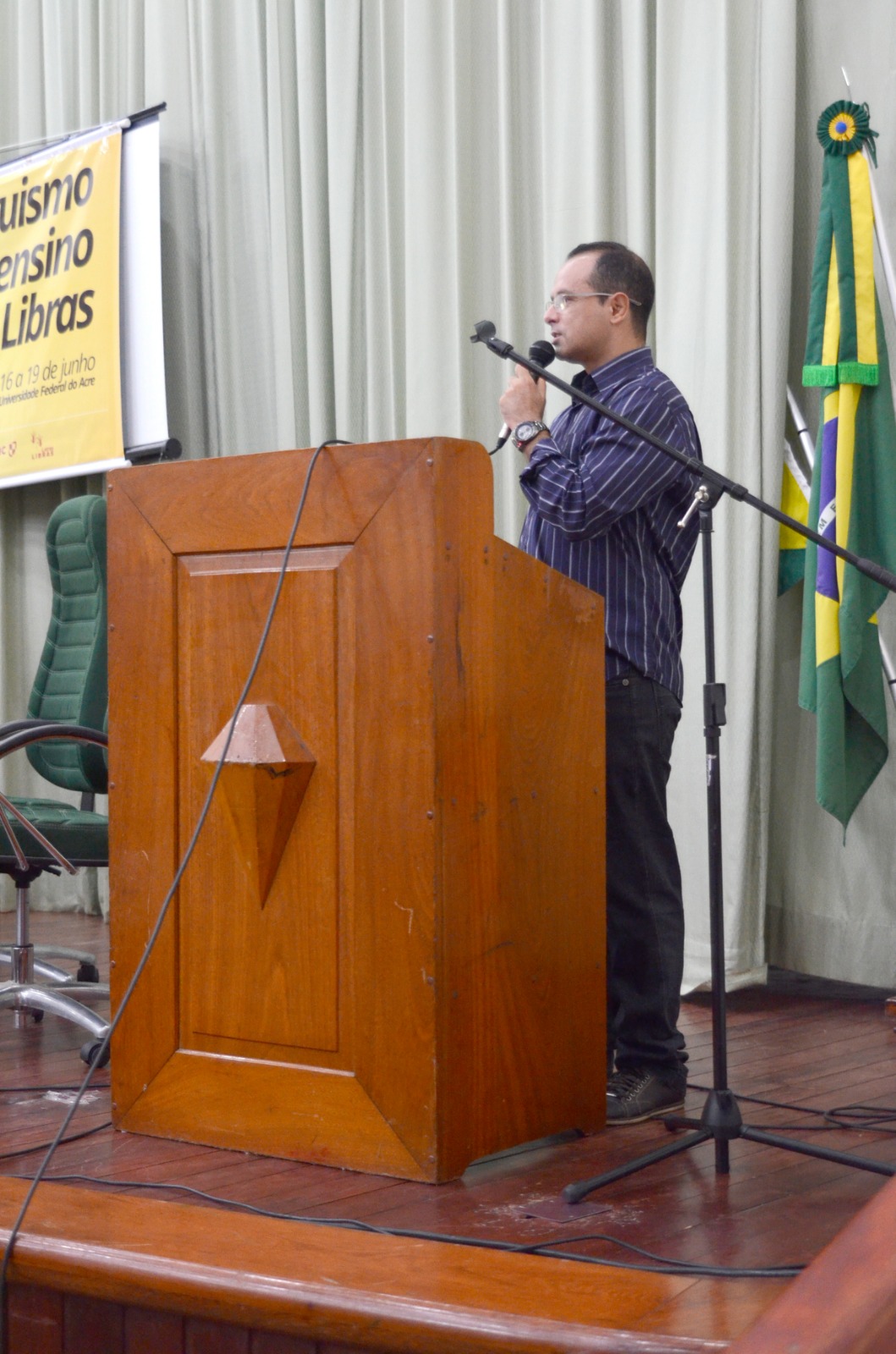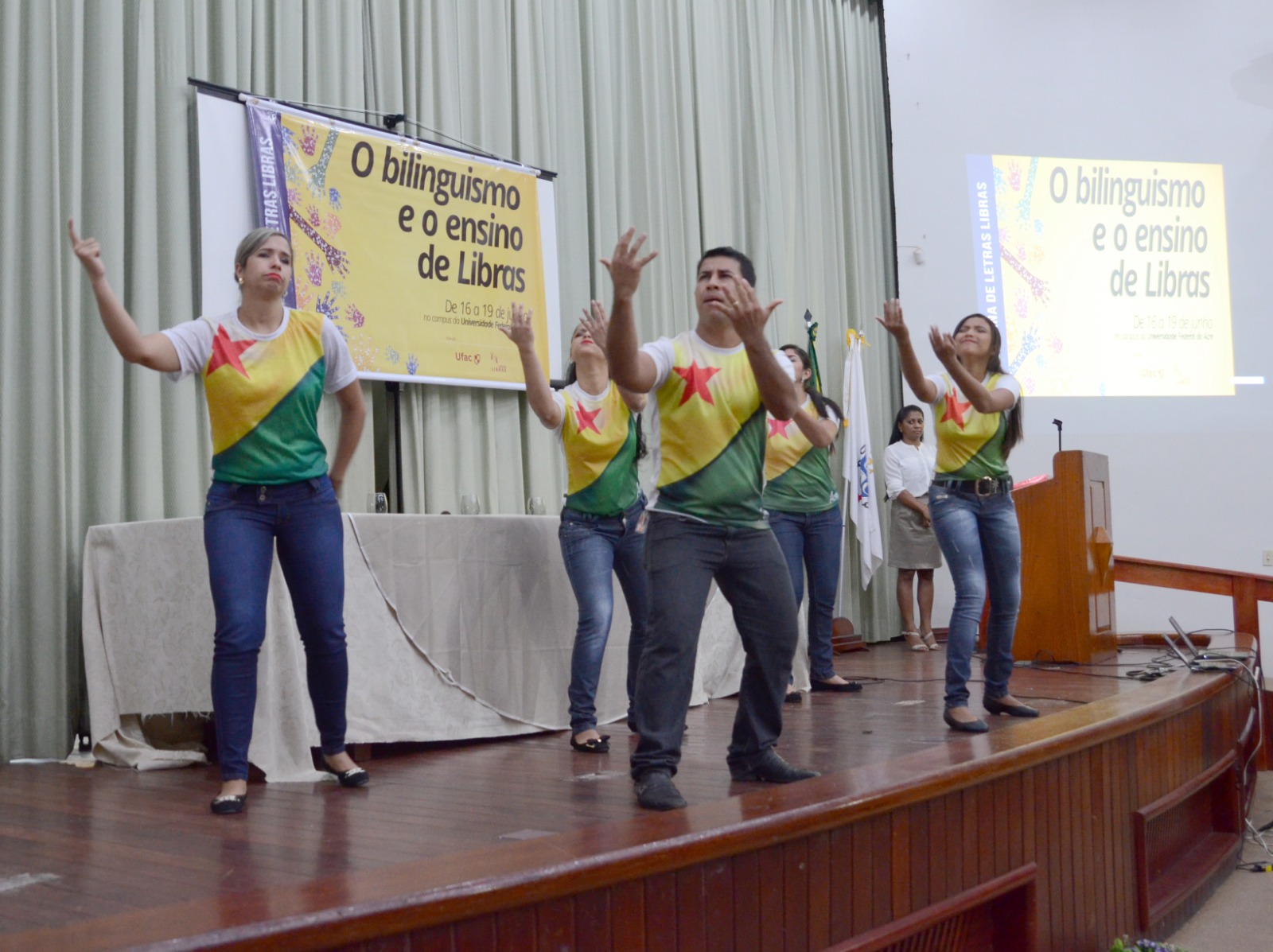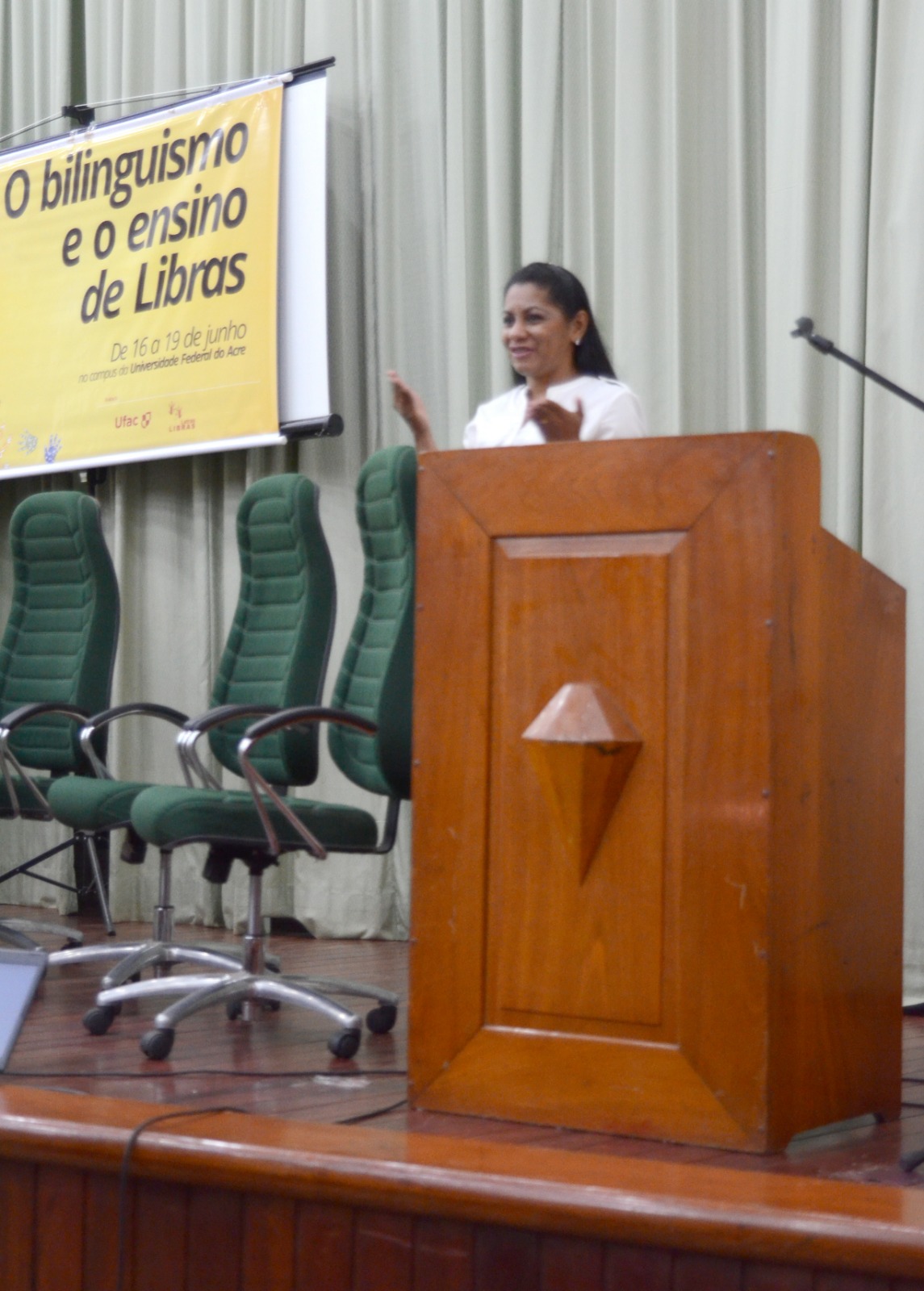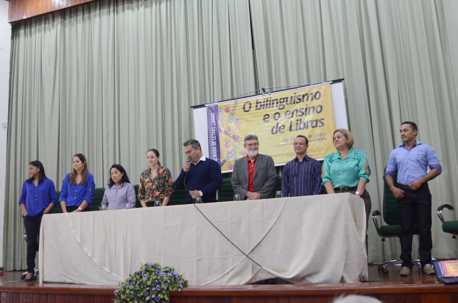 Com o tema “O bilinguismo e o ensino de Libras”, o curso de Letras Libras realizou, entre os dias 16 e 19 de junho, a 1ª Semana de Letras Libras na Universidade Federal do Acre (UFAC). O evento contou com a participação ativa da comunidade acadêmica e de membros da comunidade externa. A abertura ocorreu no anfiteatro Garibaldi Brasil, às 8h do dia 16.