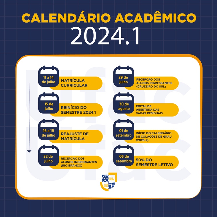 O semestre letivo 2024.1 será concluído no dia 12 de novembro, garantindo o cumprimento dos 108 dias letivos necessários. Para os ingressantes, o período contará com 116 dias, devido ao período adicional, terminando dia 23 de novembro.