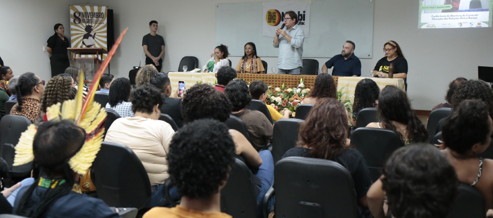 O Núcleo de Estudos Afro-brasileiros e Indígenas (Neabi) da Ufac realizou, na segunda-feira, 3, na sala Auton Peres, a abertura da 11ª Semana em Favor da Igualdade Racial e do 8º Novembro Negro, com o tema “Nada Sobre Nós Sem Nós: Acesso, Permanência e Protagonismo Negro”. A programação segue até 27 de novembro, com palestras, rodas de conversa, mesas-redondas, seminários, oficinas e exposições.