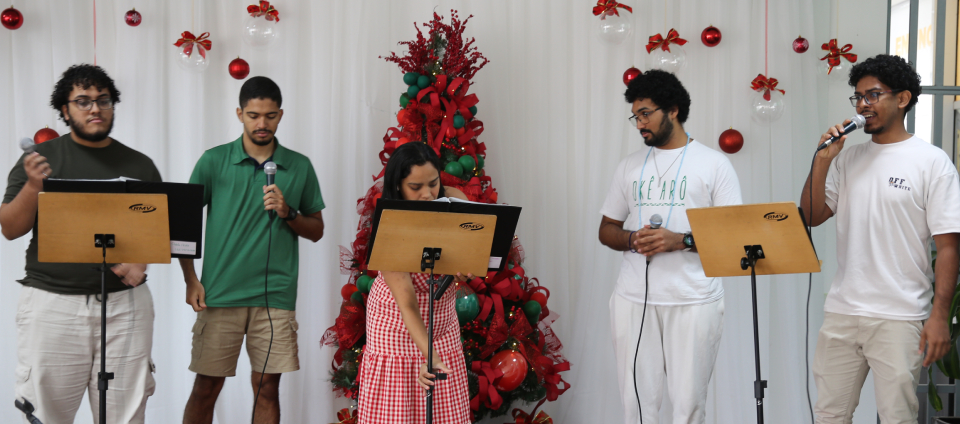 Como parte da programação, o RU oferece almoço e jantar especiais, incluindo a entrega de panetone como sobremesa. O ambiente também recebe decoração temática e contará com música ao vivo, realizada pelos bolsistas do projeto Pró-Cultura Estudantil, responsáveis pela tradicional cantata de Natal.